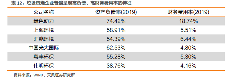 3.1.1垃圾發(fā)電企業(yè)普遍呈現(xiàn)高負(fù)債、高財(cái)務(wù)費(fèi)用率的特征