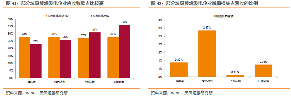 初始投資較大疊加存量項(xiàng)目補(bǔ)貼拖欠,垃圾發(fā)電企業(yè)普遍呈現(xiàn)高負(fù)債、高財(cái)務(wù)費(fèi)用率的特征。垃圾焚燒項(xiàng)目前期投資較高,企業(yè)投產(chǎn)高峰階段資本支出較大,導(dǎo)致現(xiàn)金流承壓;同時(shí)為了滿足融資需求,企業(yè)財(cái)務(wù)杠桿也較高,導(dǎo)致財(cái)務(wù)費(fèi)用率較高。此外,在存量項(xiàng)目補(bǔ)貼拖欠的影響下,一方面,企業(yè)賬面存在較多應(yīng)收賬款,資金回籠受限;另一方面,計(jì)提的大額減值損失對(duì)企業(yè)利潤(rùn)也有一定侵蝕。以幾家垃圾焚燒龍頭企業(yè)2019年財(cái)務(wù)數(shù)據(jù)為例,應(yīng)收賬款占流動(dòng)資產(chǎn)及營(yíng)收的比例較高,減值損失占營(yíng)收的平均比例也達(dá)到1.2%。