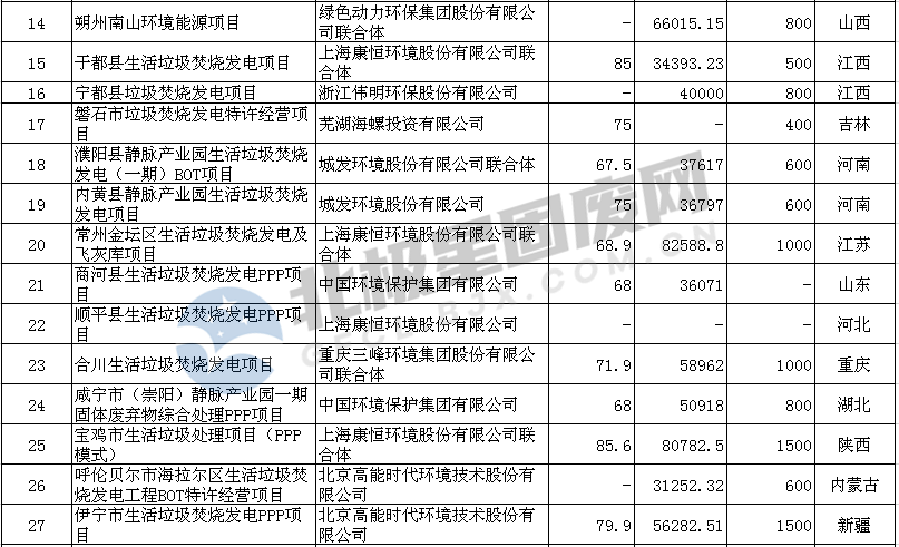 從69個中標(biāo)的垃圾發(fā)電項目來看,湖南、河北、河南三個省份分別累計釋放11、9、8個項目,位居全國前三,湖北省中標(biāo)5個垃圾焚燒發(fā)電項目位居第四位,華北、華中地區(qū)市場爆發(fā),同時內(nèi)蒙古、新疆等地也有項目釋放,青海西寧市垃圾焚燒發(fā)項目是青海省首個在建的大規(guī)模垃圾焚燒發(fā)電項目,市場進(jìn)一步向西擴(kuò)張。