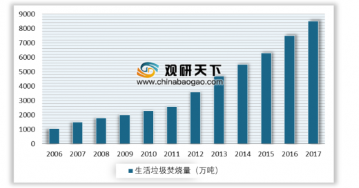 2006-2017年我國生活垃圾焚燒量