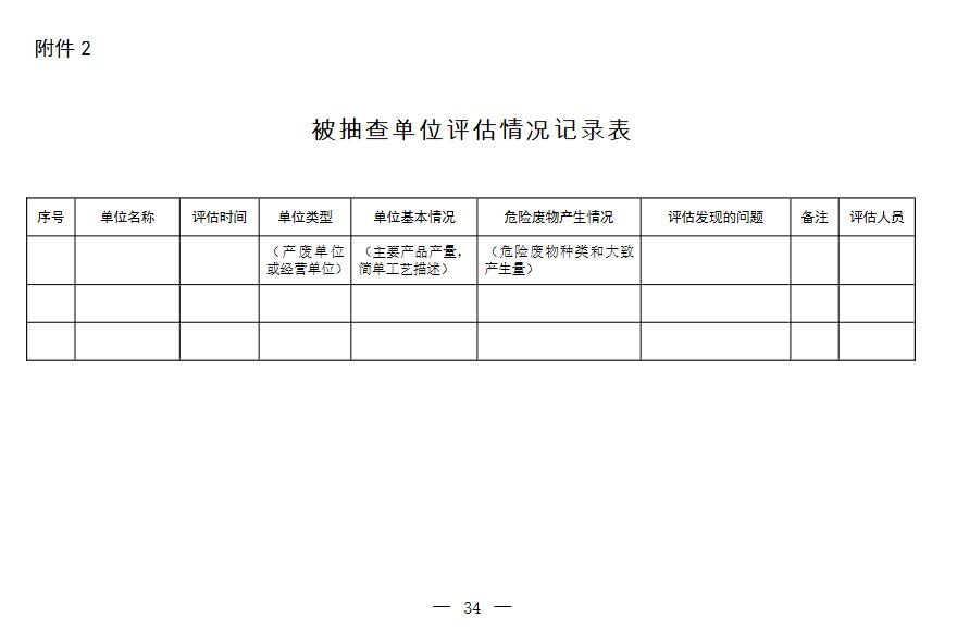 2.產廢單位:危險廢物年產生量 100 噸及以上的或擁有危險廢物自行利用處置設施的重點產廢單位不少于 60 家,若總數不足 60家時則全部進行評估;其他產廢單位不少于 20 家,若總數不足 20家時則全部進行評估。
