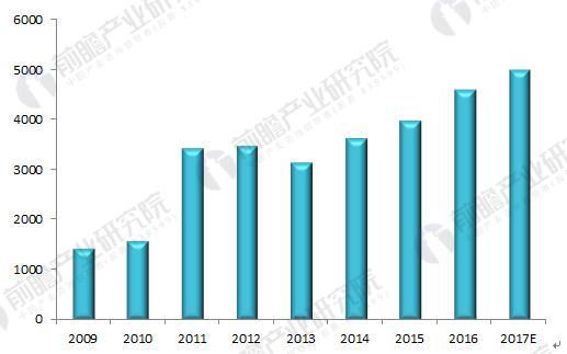 圖表1:2009-2017年工業(yè)危險(xiǎn)廢棄物產(chǎn)生量(單位:萬噸)