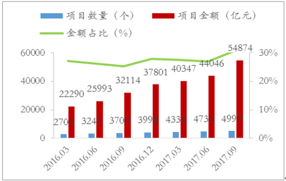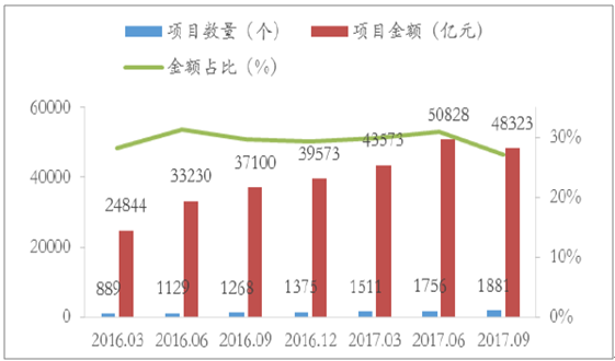 財政部PPP項目數(shù)量/投資額統(tǒng)計(截止2017年9月末)