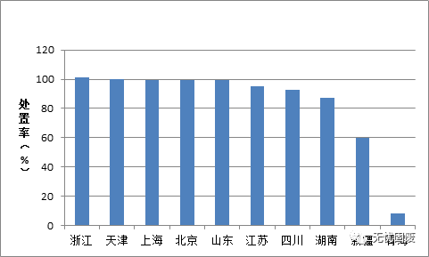 ? ? 其中,青海處置率最低,僅有8.3%,浙江、天津等地處置率均超過(guò)100%。