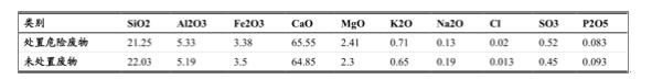 北京水泥廠投加危險(xiǎn)廢棄物前后熟料化學(xué)成份對(duì)比(%)表明協(xié)同處置危廢后對(duì)水泥品質(zhì)影響不大