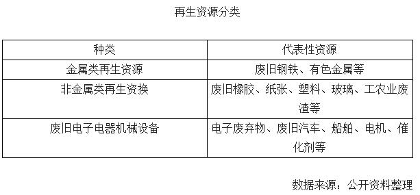 ? ? 再生資源是指在人類(lèi)的生產(chǎn)、生活、科教、交通、國(guó)防等各項(xiàng)活動(dòng)中被開(kāi)發(fā)利用一次并報(bào)廢后,還可反復(fù)回收加工再利用的物質(zhì)資源。從類(lèi)型來(lái)看,主要包括三大類(lèi):金屬類(lèi)再生資源、非金屬類(lèi)再生資源和廢舊電子電氣機(jī)械設(shè)備。