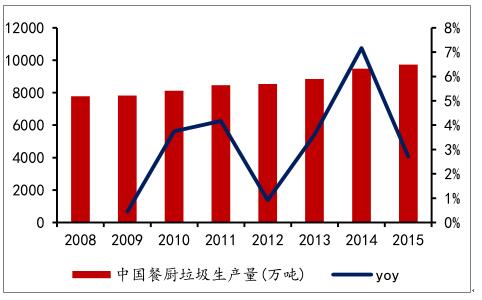 ? ? 隨著經(jīng)濟(jì)的增長,居民消費水平的提高,人們在餐飲方面的消費與日俱增,帶來了餐廚垃圾的迅速增長,據(jù)統(tǒng)計,2015年全國餐廚垃圾年產(chǎn)生量達(dá)9500萬噸,日均產(chǎn)量達(dá)26萬噸/日,其中主要城市餐廚垃圾產(chǎn)生量達(dá)6000多萬噸,上海、北京、重慶、廣州等餐飲業(yè)發(fā)達(dá)城市問題尤為嚴(yán)重,餐廚垃圾日產(chǎn)生量達(dá)到2000噸以上。2016年,全國餐廚垃圾產(chǎn)生量約在9700萬噸左右。