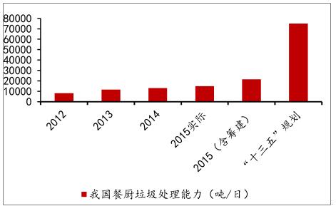 ? ? 根據(jù)《“十三五”全國城鎮(zhèn)生活垃圾無害化處理設(shè)施建設(shè)規(guī)劃》“十三五”期間我國將新增餐廚處理能力3.44萬噸/日,對應(yīng)投資額183.5億元。盡管餐廚垃圾擁有巨大的市場,國家和地方政府也出臺一系列政策扶持行業(yè)發(fā)展,但餐廚垃圾處理項目實施進(jìn)度仍然很緩慢,低于市場預(yù)期。截至2015年末,全國已投運、在建、籌建的餐廚垃圾處理項目(50t/d以上)約有118座,總計處理能力約2.15萬噸/日,并且籌建中的40座處理設(shè)施(處理能力0.66萬噸/日),大部分僅處于完成立項階段,剔除這部分,我國餐廚垃圾實際處理能力不超過1.4萬噸/日,日處理率僅為5.5%,要完成“十三五”新增目標(biāo)壓力較大?,F(xiàn)有餐廚垃圾處理能力的缺口將帶來較大的投資機(jī)會。