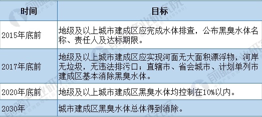 ? ? 而《水污染防治行動計劃》明確提出,黑臭水體治理目標要求:到2020年,地級及以上城市建成區(qū)黑臭水體均控制在10%以內;到2030年,城市建成區(qū)黑臭水體總體得到消除。