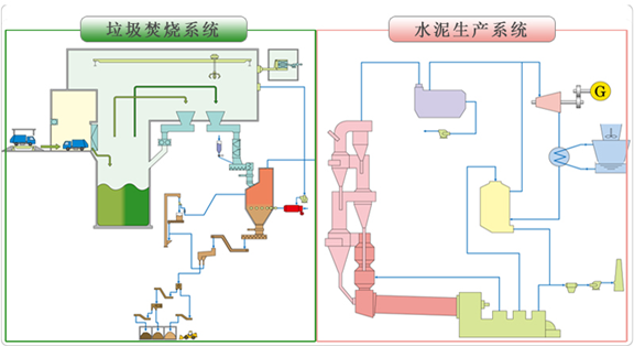 垃圾焚燒產(chǎn)生的熱量可替代部分水泥窯燃料,減少燃料燃燒產(chǎn)生的二氧化碳排放;相比填埋處理方式,避免了甲烷和二氧化碳排放問題;爐渣可替代部分水泥原料,游離態(tài)鐵、鋁等金屬可分別回收,資源化程度高。