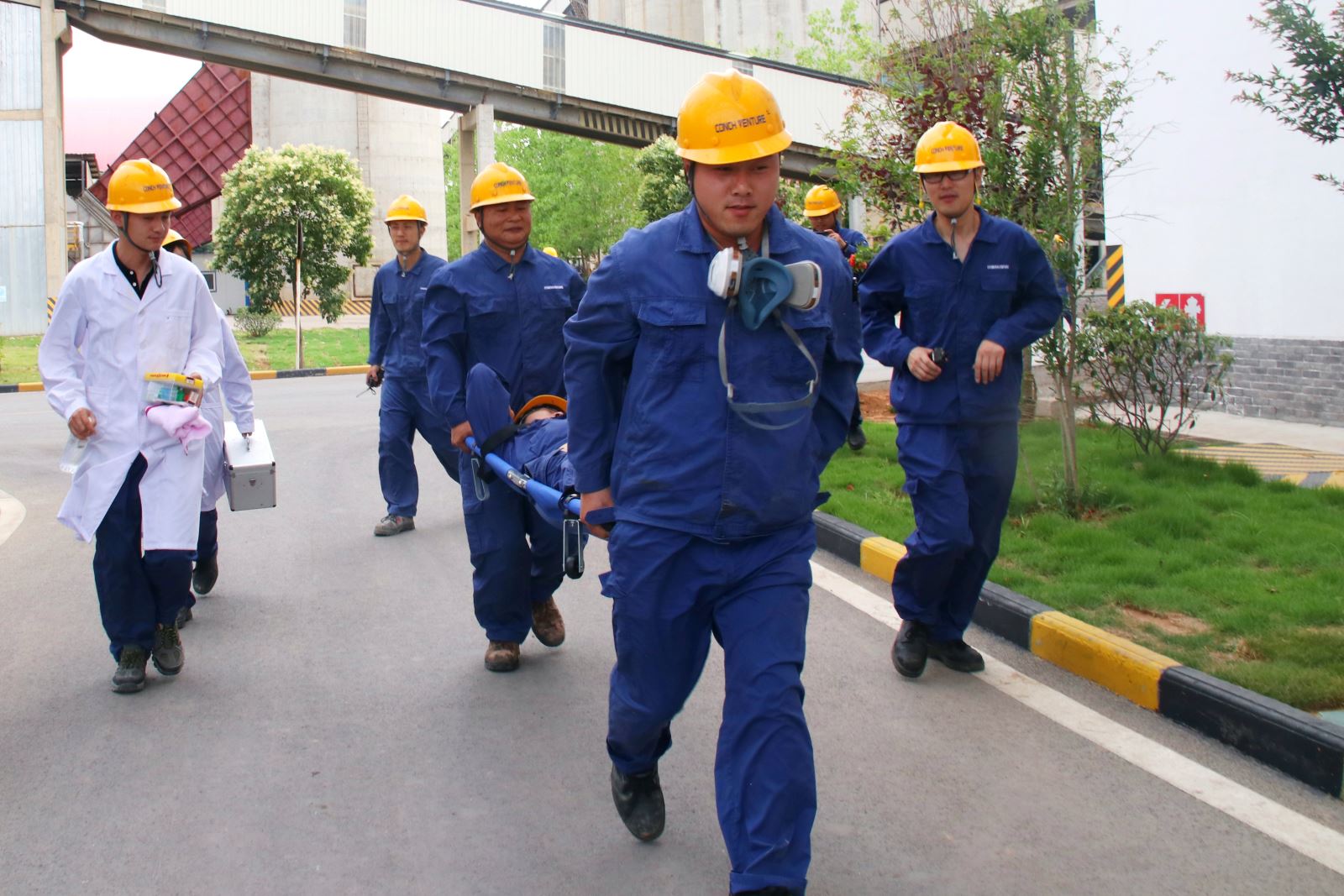 ? ? 6月24日下午,公司組織開展了高溫中暑應(yīng)急演練。15:00,總指揮接到報(bào)告,卸料大廳有人昏倒在地,應(yīng)急救援小組立即啟動(dòng)預(yù)案,根據(jù)患者情況,迅速作出判斷,轉(zhuǎn)移至安全地帶進(jìn)行救治。